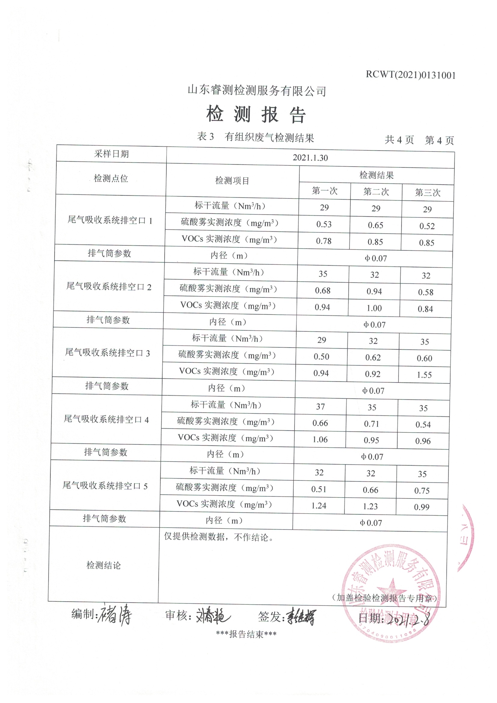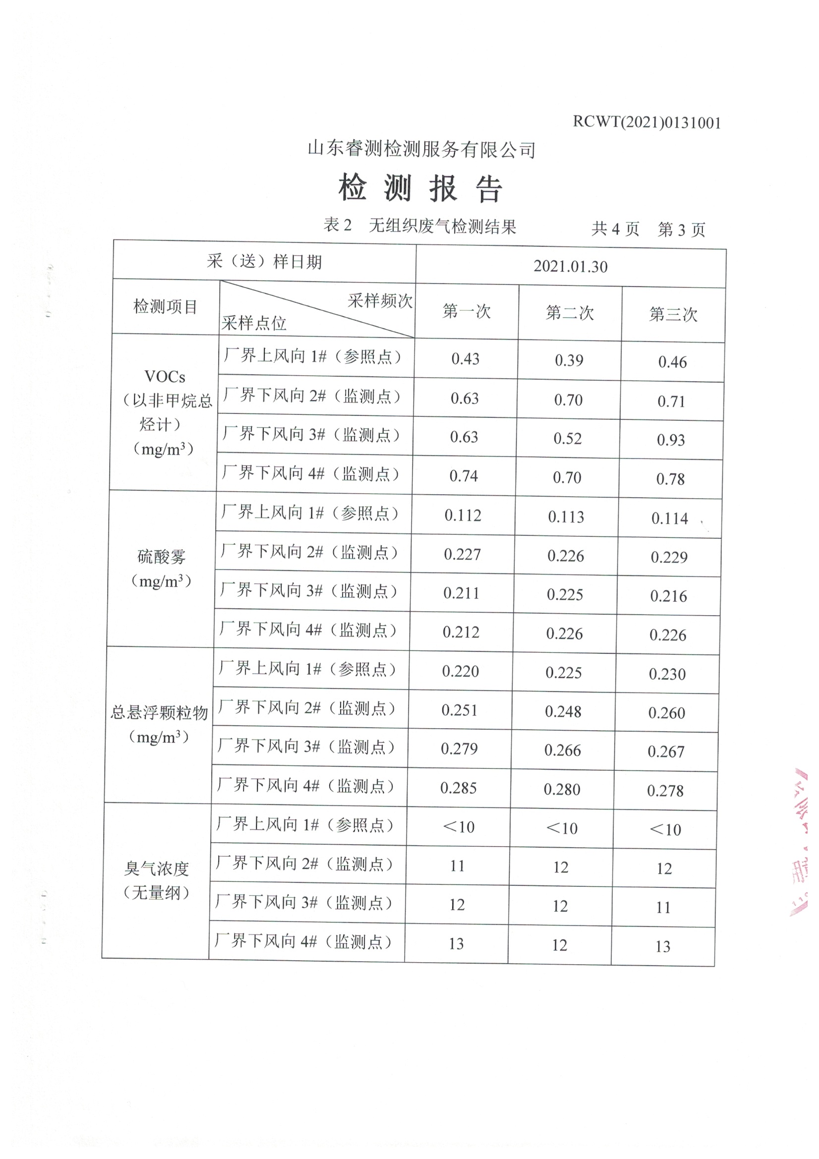 2021年第一季度自行檢測報告