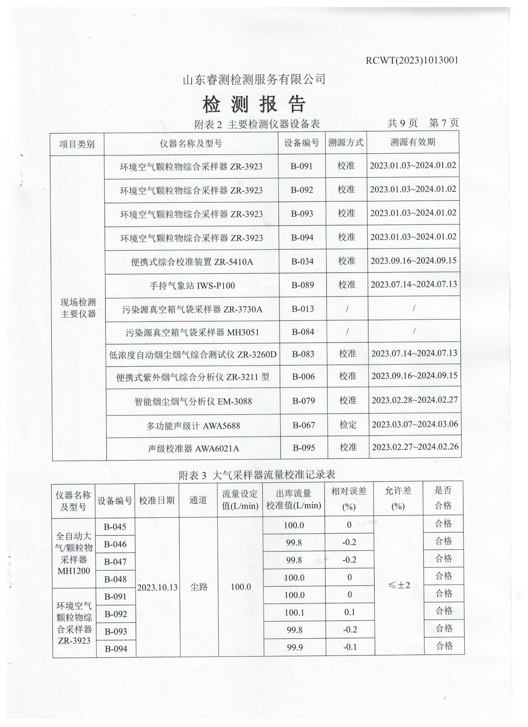 2023年第4季度(11月份)檢測(cè)報(bào)告
