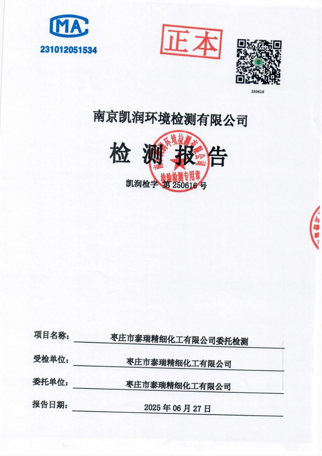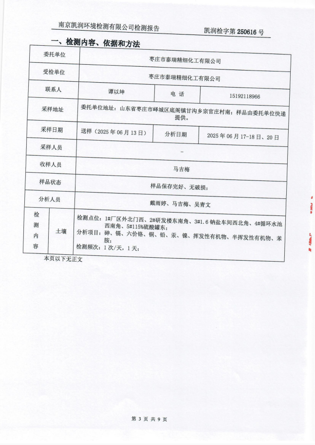 2025年泰瑞精細化工有限公司土壤檢測報告